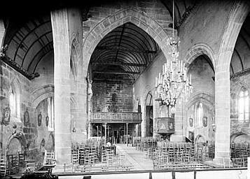 L'église possède un clocher à deux étages de galeries en encorbellement, terminé par une flèche très élancée. L'abside est polygonale. Le porche est daté de 1642. A l'intérieur, la date de 1615 est indiquée sur les sablières du choeur. Les poutres et sablières de la nef sont sculptées.