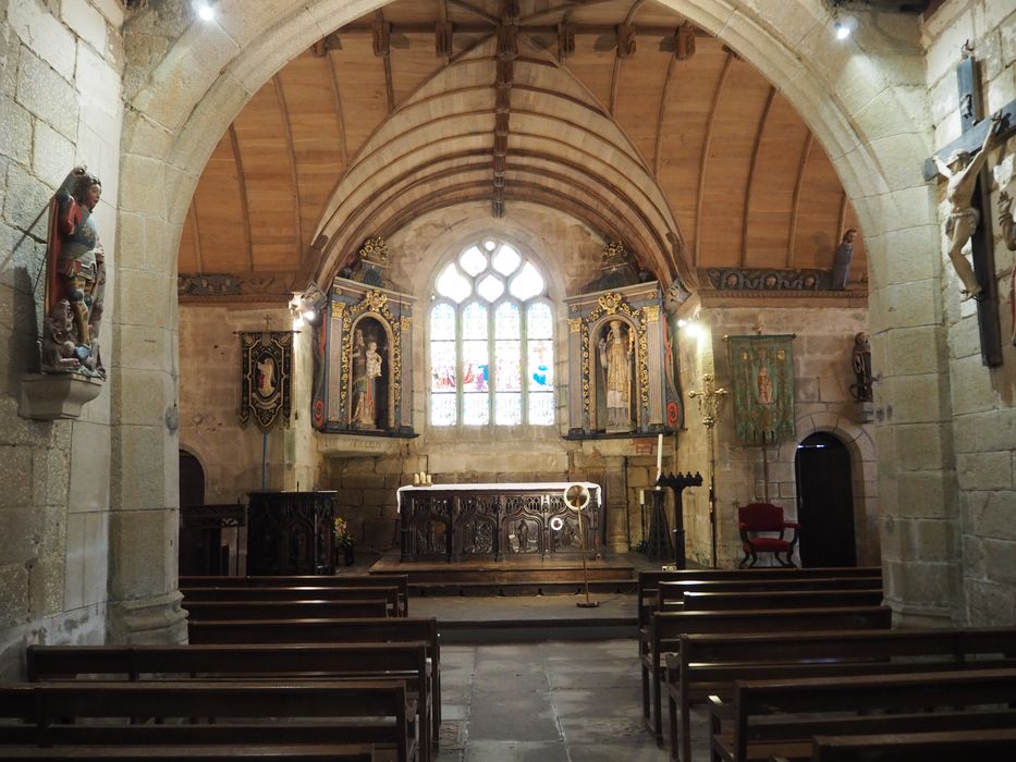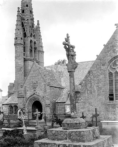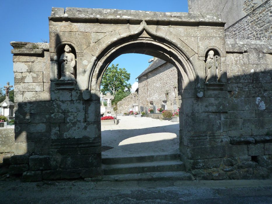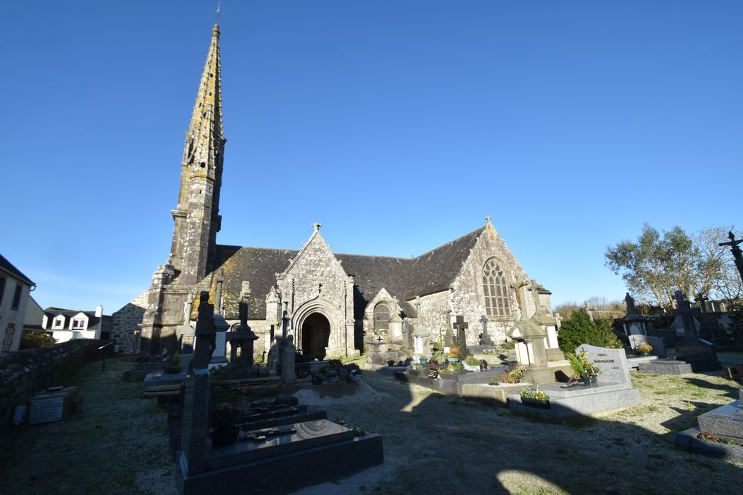 Une inscription sur les fonds baptismaux porte la date de 1567 ; l'arc triomphal à l'entrée du cimetière porte celle de 1568. Le clocher date de 1660 et sa tourelle de 1671. Le chevet conserve une baie représentant le couronnement d'épines, la crucifixion, la descente de croix et Saint-Jean-Baptiste avec un donateur. Séparé de la rue par un mur bahut couronné en bâtière, le cimetière possède en son centre un calvaire de 1645.