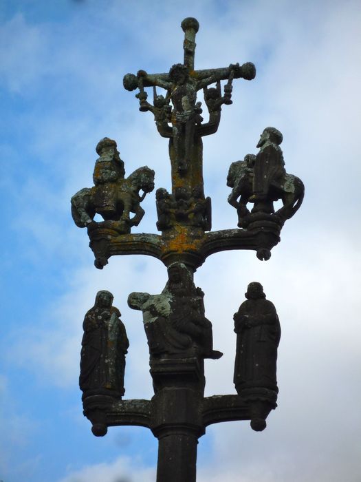 La croix comprend, outre le Christ et quatre anges recueillant son sang, Saint-Longin, la Sainte-Vierge et Saint-Jean. Au pied de la croix, Marie-Madeleine est agenouillée. Les bras de la croix portent deux cavaliers.