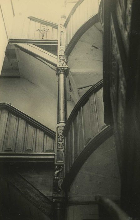 L'immeuble, à pignon aigu, comporte trois étages en encorbellement dont le dernier se réduit, en façade, à une sorte de soupente inscrite dans le fronton triangulaire des combles. Les poteaux corniers recevaient des statuettes. A l'intérieur, les étages sont desservis par un escalier en bois, en spirale. La balustrade des galeries comporte une suite de panneaux. Le pilier central présente un exemple typique de l'art mobiliaire de la Renaissance, avec cariatides et mascarons. Si, au 17e siècle, ce type d'escalier n'était plus une création, celui-ci demeure un témoignage de la manière dont les architectes et les sculpteurs de l'époque se sont inspirés de la tradition médiévale en l'adaptant au goût du jour.