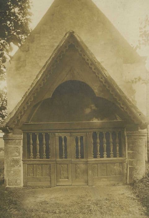 Chapelle de la fin du 16e siècle (1574) , certainement remaniée au 18e. L'édifice comprend une nef précédée d'un porche en bois fermé par une clôture à balustres surmontant un lambris de panneaux sculptés. Le choeur est flanqué de deux bas-côtés et se termine par une abside circulaire. L'édifice est entièrement voûté en bois, avec entraits et corniches sculptés.