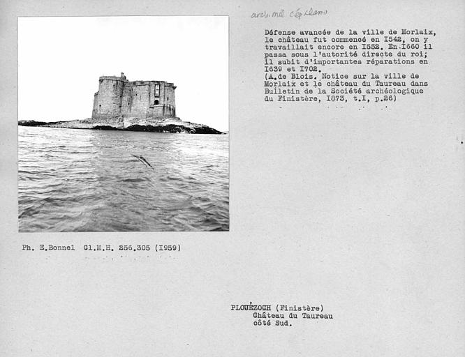 Placé à l'entrée de la baie de Morlaix, l'ilôt du Taureau était d'une importance stratégique capitale pour la défense de celle-ci. Un premier château construit en 1521 fut rapidement détruit par les Anglais. Reconstruit à partir de 1542, il a subi depuis de nombreuses modifications : reconstruction du donjon (tour française) en 1614, restauration du donjon, démolition, reconstruction et agrandissement de l'ancien fort de 1689 à 1692 sous la direction de Vauban et Garengeau, agrandissements successifs à la fin du 17e siècle et au début du siècle suivant, toujours sous la direction des deux ingénieurs, etc. Par ailleurs, les parties hautes de l'édifice ont été modifiées plusieurs fois pour suivre les progrès de l'artillerie et il a aujourd'hui perdu son couronnement crenelé. En dépit de ces modifications, il s'agit d'un édifice majeur de l'histoire de la construction militaire.