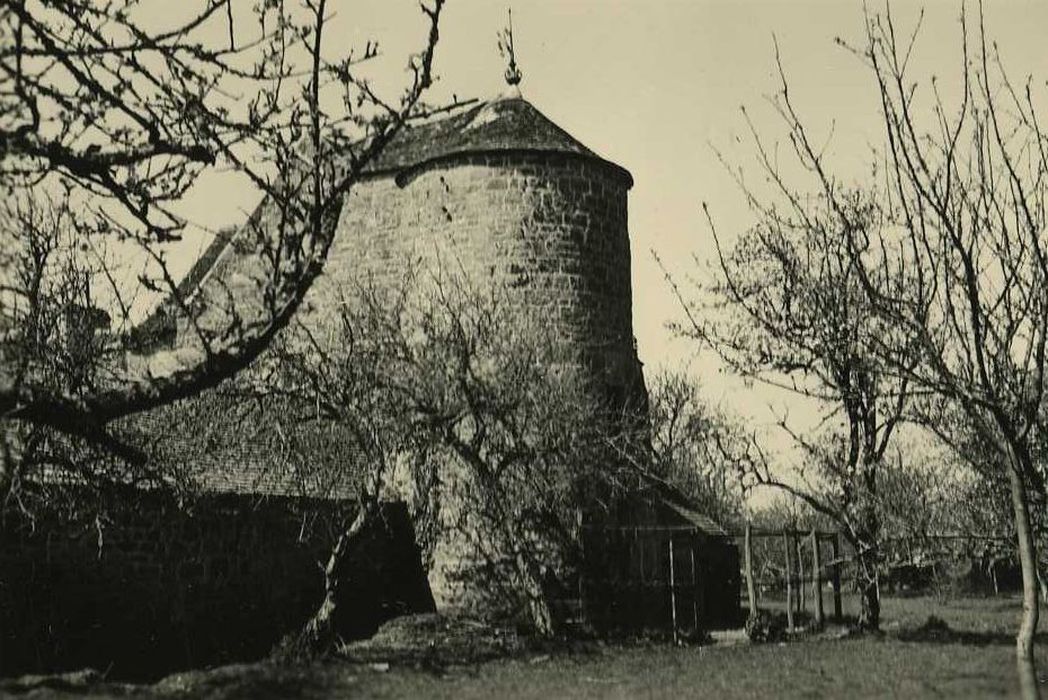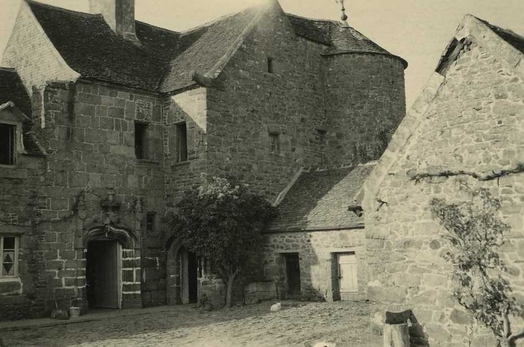 L'ancien manoir se compose de deux bâtiments en retour d'équerre flanqués, dans l'angle extérieur, d'une tour circulaire à toit conique. Au sud, la façade est percée d'une porte en accolade. L'archivolte des voussoirs est surmontée d'un fleuron supportant un écu. L'accolade est flanquée de deux pilastres à pinacle supportant chacun un écu. A l'exception d'une fenêtre en accolade, les autres ouvertures ont été modifiées. Le retour du bâtiment ouest présente une porte voûtée en plein cintre, surmontée d'une petite fenêtre en accolade.