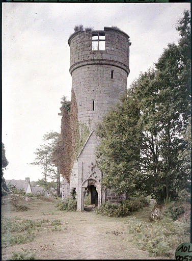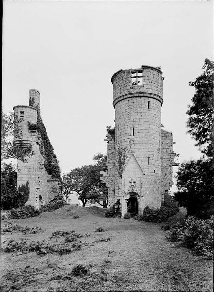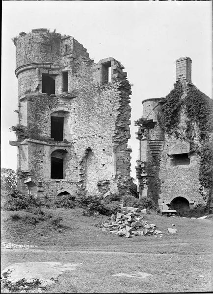 Le château aurait été bâti, à l'origine, par Etienne, comte de Penthièvre, au 12e siècle. Les vestiges actuels remontent à la reconstruction du 15e siècle. L'ensemble a été vendu comme bien national à la Révolution. Les pierres du château ont servi à la construction des fermes alentour. La tour d'angle contient un escalier ayant conservé son noyau intact.