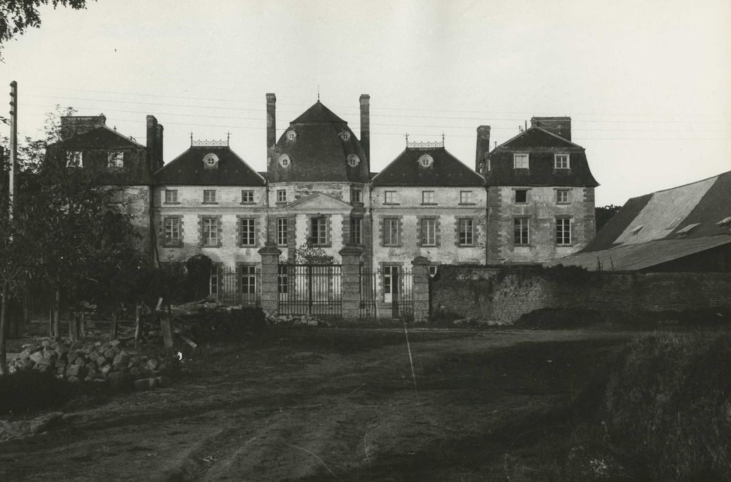 Château du 18e siècle, édifié par l'architecte Binet, semblant constitué d'une succession de pavillons aux couvertures variées. L'ancien manoir possédait une grosse tour. Le château actuel est entouré d'un parc muré. La façade occidentale comprend un pavillon central, deux corps de bâtiment en retrait et deux ailes saillantes. Au premier étage se trouve un balcon en fer forgé et ouvragé, soutenu par quatre consoles à enroulements et à feuilles d'acanthe. Le deuxième étage est orné d'un grand fronton triangulaire mouluré, décoré d'une rosace accostée de deux rinceaux. Au-dessus s'élève un toit en dôme, percé d'une grande gerbière avec deux consoles renversées et deux chutes de fruits pendues à des anneaux que soutiennent deux têtes de lion. Sur la façade ouest, la construction nord renferme la chapelle de la fin du 18e siècle, qui remplace une chapelle plus ancienne. Son abside est à pans coupés.