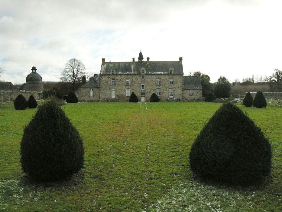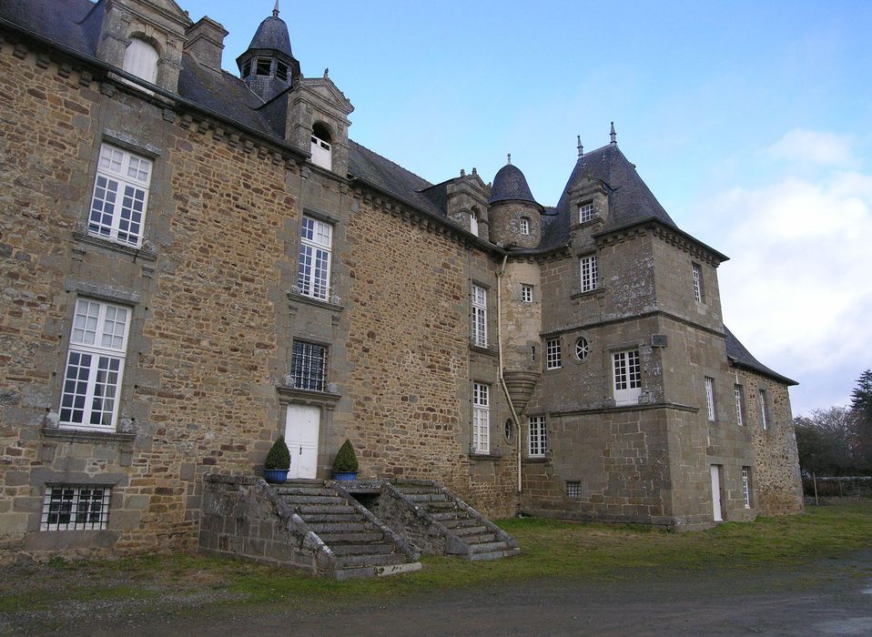 A l'époque où Jean Sans Terre détruisait les dépendances du diocèse de Dol, est entreprise la construction d'un édifice laïc près des bâtiments du prieuré de la Chapelle aux Filtzméens, qui avait déjà subi des destructions. Cet édifice devait offrir aux moines une protection. L'ensemble du château actuel date du 17e siècle, avec un pavillon du 16e. Il fut remanié et mis au goût du jour au 18e siècle (1750). Les boiseries sont d'une facture Louis XV. Le colombier a conservé son état du 17e siècle, avec trois mille niches et une échelle tournante. Le château et les bâtiments qui l'entourent s'organisent autour de deux cours rectangulaires. Le château est prolongé par le pigeonnier et une haie de buis précédant les douves. Les bâtiments de la ferme sont rassemblés au nord du château, autour d'une cour.