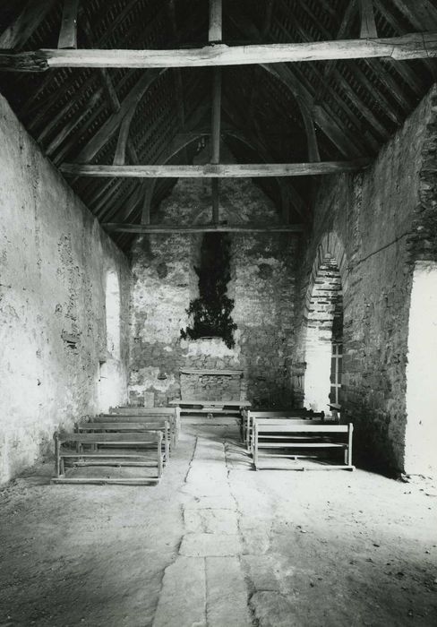Chapelle du 13e siècle qui appartenait aux Templiers. En 1312, à la destruction du Temple, elle passe aux Hospitaliers qui édificent probablement le bras sud. Restes de peintures murales sur le mur du chevet, au-dessus et dans les ébrasements de la fenêtre. A la fin du 16e siècle, le manoir du Temple est ruiné par les guerres civiles. Après la Révolution, l'édifice est transformé en hangar agricole.