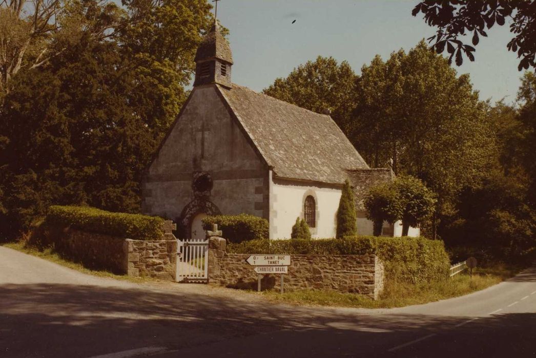 Chapelle dépendant du manoir de Saint-Buc, reconstruite en 1660. Les communs du manoir datent également du 17e siècle. Le manoir lui-même a été entièrement reconstruit en 1755. La chapelle se présente comme un édifice rectangulaire surmonté d'un clocheton carré avec toit en dôme. La façade occidentale est percée d'une porte en plein cintre surmontée d'un oculus.