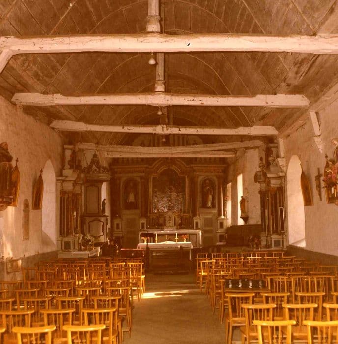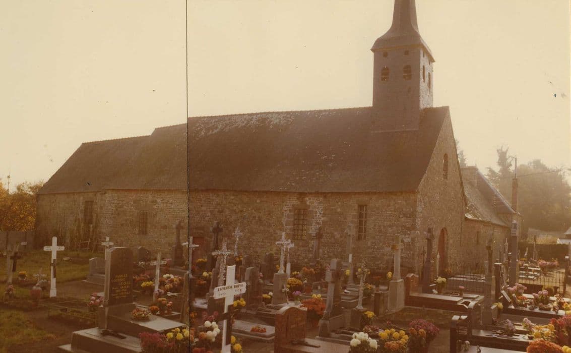 Au 11e siècle, l'église fut donnée à l'abbaye de Saint-Florent, en Anjou, qui l'unit à son prieuré de Tremblay. Les parties les plus anciennes de l'édifice remontent au 16e siècle. Un arc triomphal séparait encore le choeur de la nef au début du 19e siècle. C'est un édifice de plan rectangulaire dont le pignon ouest s'ouvre par une porte en plein cintre et une petite fenêtre cintrée. Le chevet est droit et aveugle. Le clocher d'ardoise présente quatre faces ouvertes d'abat-sons, et est surmonté d'une flèche octogonale très élancée.