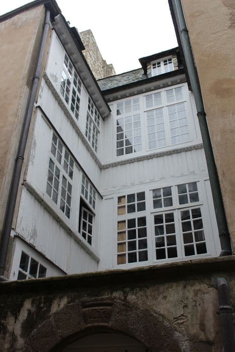 Cette maison faisait partie de l'enceinte primitive. C'est l'une des deux maisons à façade en bois subsistant encore dans la ville. Une niche d'angle présente une coquille au sommet et une base terminée par une tête humaine.