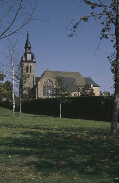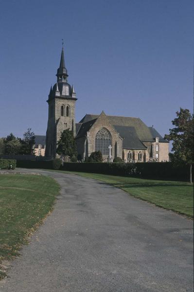 La construction de cette ancienne abbatiale remonte, pour sa partie la plus ancienne, à la fin du 12e siècle ou au début du 13e siècle. Jusqu'à la fin du 18e siècle (1771) , l'église abbatiale se composait d'un choeur à chevet droit avec collatéral au nord, d'une nef, d'un transept et d'une tour centrale. La façade principale se trouve à l'est. C'est l'ancien chevet droit de l'ancien choeur et du collatéral. La façade sud comprend l'ancien choeur, qui est la nef actuelle, auquel est accolée une longue sacristie éclairée par trois fenêtres en arc brisé, à un meneau avec quadrilobe au tympan. Des sondages réalisés en mars 1986 à l'intérieur de cette sacristie (mur mitoyen de la nef) , ont permis de découvrir l'existence de peintures murales. Celles-ci, vraisemblablement exécutées à la fin du 13e siècle ou au début du 14e siècle, semblent recouvrir les trois quarts de la partie haute du mur, avec retour sur le mur est. Sur la façade nord, le collatéral présente des fenêtres en arc brisé ; l'une d'elles est à trois meneaux se croisant au tympan ; une autre est divisée par trois meneaux et une petite rosace. Le croisillon sud du transept est appuyé par des puissants contreforts et est éclairé, à l'ouest, par une fenêtre en arc brisé à deux meneaux qui s'entrecroisent au tympan, comme dans l'église de Redon. Au pignon se trouve une grande fenêtre rayonnante à cinq meneaux et treize rosaces polylobées de différentes dimensions. On y voit des vestiges de vitraux de la fin du 13e siècle ou du début du 14e siècle. Le croisillon nord a son pignon ajouré d'une grande fenêtre en arc brisé, à trois meneaux, avec tympan à trois roses polylobées. La tour date de la fin du 12e siècle, elle s'élève à l'ouest du transept et à l'est de l'ancienne nef démolie. A l'intérieur de l'église, l'ancien choeur, nef actuelle, est séparé de son collatéral nord par des arcades en arc brisé à nombreuses voussures, reposant sur d'élégants faisceaux de colonnettes qui accusent le 14e siècle. Deux serpents entrelacés forment le chapiteau d'un groupe de ces colonnettes. La nef est voûtée en lambris de bois, avec des poutres moulurées, dont le plus grand nombre repose sur des consoles en pierre chargées d'écussons et de grotesques. L'église possède plusieurs tombeaux intéressants : le tombeau dit de Saint-Méen, transporté en 1771 dans le mur ouest du croisillon nord. En outre, on peut remarquer des autels Renaissance, construits sans doute par les lazaristes, et un beau retable à colonnes du 17e siècle.
