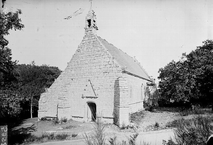 Chapelle rectangulaire avec bas-côté, au nord, séparé par des arcades ogivales, colonnes sans chapiteaux. Fronton au-dessus de la porte. Pignon d'entrée de forme mi-gothique, mi-Renaissance. En façade sud, porte avec accoalde, fleuron et petits pinacles. Tribune en bois à panneaux représentant les 12 apôtres, le Sauveur, la Vierge et le jugement de Pilate.