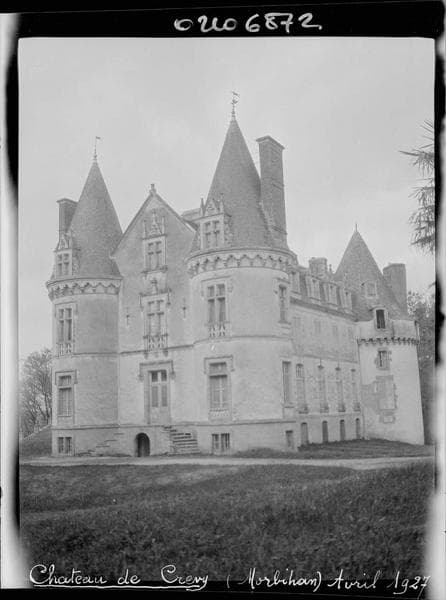 Le corps principal date du 17e siècle. Il s'appuie à l'est sur une grosse tour du 14e et un escalier à la française en granit accompagné de quelques constructions annexes. La partie ouest comprenant deux tourelles et une entrée a été refaite au 19e siècle sous Charles X, dans le style gothique. Reste également du 14e siècle une tour isolée au nord-est et le soubassent de deux autres tours soutenant la terrasse nord ou prise dans les douves. Durant plusieurs siècles, le château tint un rôle prépondérant dans la défense de la Bretagne, de part sa position sur la route de Rennes à Vannes et la voie navigable de Brest à Nantes. Il s'illustra en 1591 et 1592 en résistant aux troupes de Henri IV. Les plus anciens propriétaires remontent à 1149.