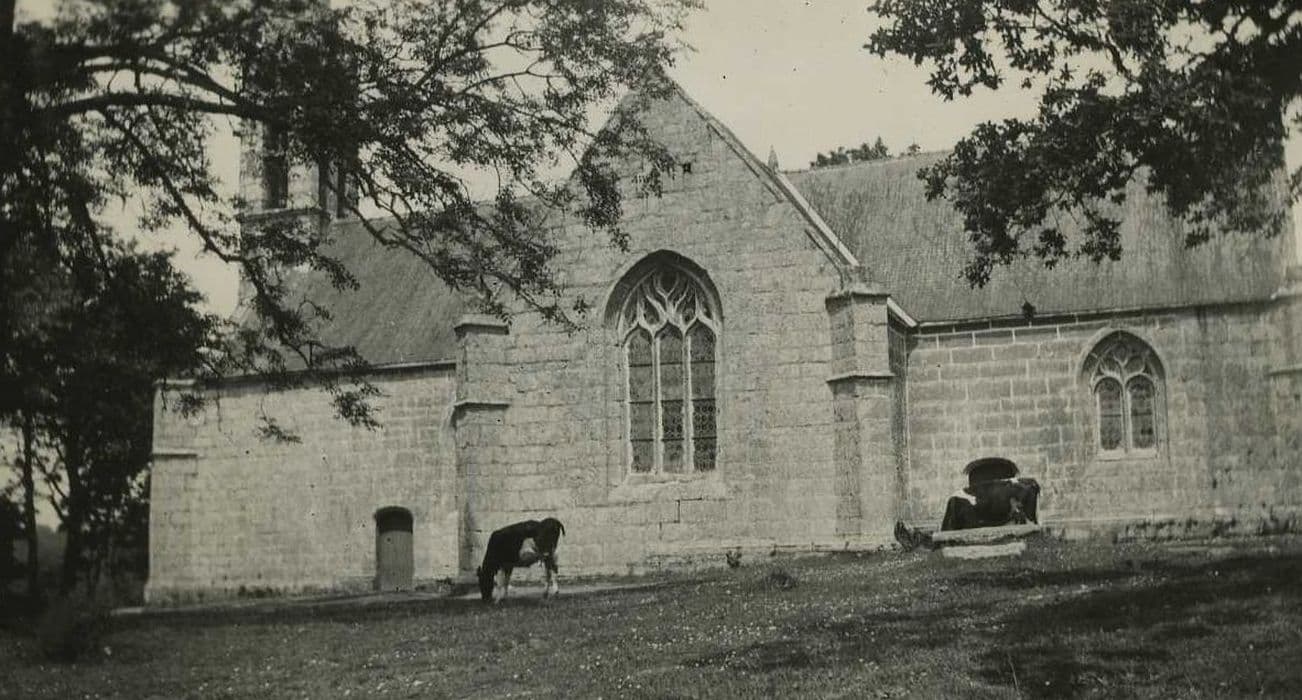 Chapelle en forme de croix latine avec petit clocheton à jour. Fenêtres à meneaux. A l'intérieur, dans le transept sud, une inscription sur sablières mentionne l'année 1686. Les marches d'accès aux autels sont sculptées. Le choeur conserve des boiseries abimées. Sous les pinacles d'angle, les gargouilles représentent les symboles des Evangélistes.