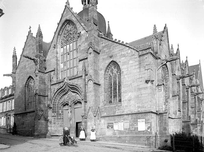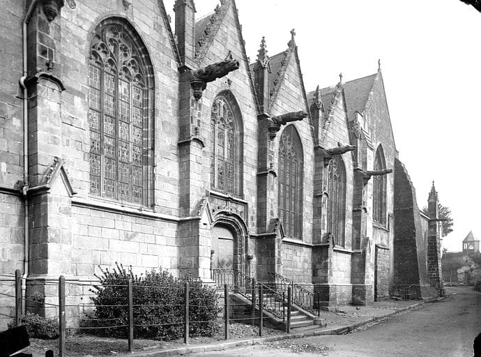 Premiers vestiges romans, fin du 12e siècle, conservés dans le choeur et une arcade sur une ancienne absidiole nord. La croisée du transept date du 13e siècle. Au 14e siècle, construction de la chapelle Sainte-Marguerite par Olivier de Clisson. Travaux en 1461, 1470 et 1480. L'église a été remaniée à l'époque contemporaine. La forme initiale de croix est devenue une sorte de rectangle dans lequel sont inscrits la nef et le choeur, les deux transepts, deux bas-côtés et les chapelles Sainte-Marguerite et Sainte-Catherine. Une tour moderne et une sacristie complètent l'ensemble. Les façades présentent toutes l'empreinte gothique du 15e siècle. A l'intérieur, les piliers romans entre le choeur et la chapelle Sainte-Catherine sont dotés de chapiteaux à personnages, animaux et volutes. Les fenestrages conservent d'anciens vitraux.