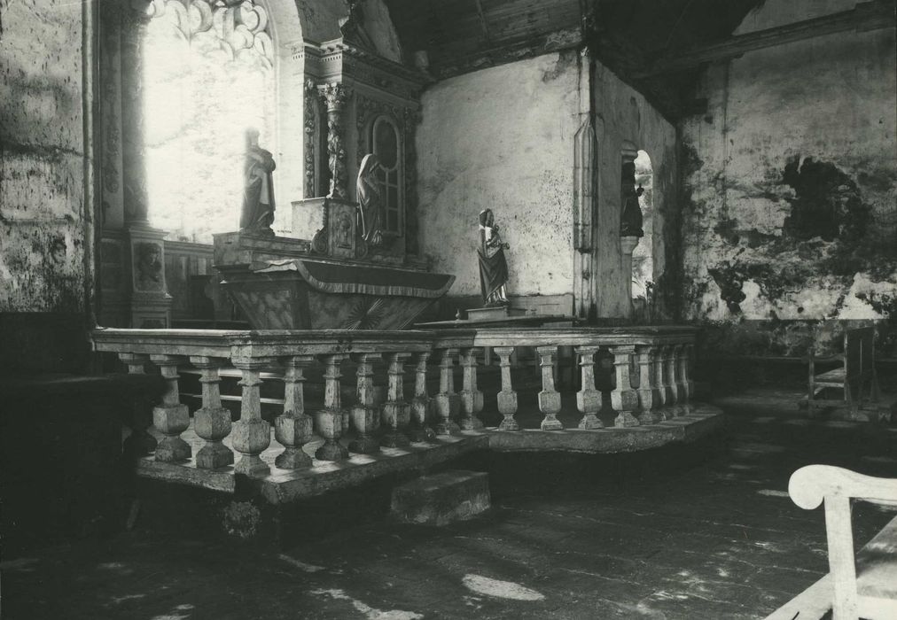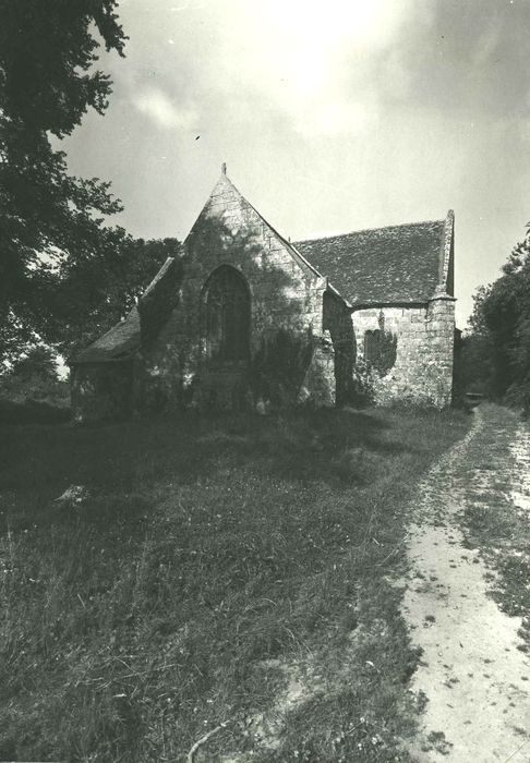 Chapelle du 16e siècle, agrandie vers 1540. Plan en croix latine. Choeur peu saillant et chevet avec adjonction d'une sacristie. Le mur pignon de la face ouest est surmonté d'un clocheton ajouré en plein cintre, percé au centre d'une porte également en plein cintre, à ébrasement mouluré.