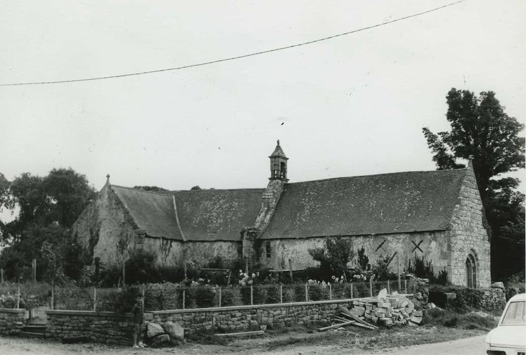 Ancienne aumônerie de l'ordre de Saint-Jean de Jérusalem dépendant de Merlevenez au 12e siècle, la chapelle devient possession de l'abbaye Notre-Dame de la Joie au 13e siècle. L'édifice est reconstruit au 15e siècle. De plan en Tau, l'édifice se compose de deux nefs désaxées, séparées par un mur diaphragme surmonté d'un clocheton. La nef haute est entièrement peinte au 15e siècle. Des personnages sont figurés sur fond d'arabesques. Une danse macabre témoigne sans doute de la représentation probable du dit des Trois morts et des Trois vifs. Une Annonciation se trouve dans l'ancienne chapelle nord.