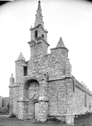Edifice rectangulaire voûté en bois. Petit clocher entre deux tourelles trapues, l'une pour l'escalier, l'autre par symétrie. L'entrée principale du pignon se trouve entre deux contreforts se réunissant par une arcade, lui faisant une sorte de niche. Fenêtres à meneaux aux formes Renaissance ou fleur de lysé. Deux portes latérales sont moulurées et accoladées.
