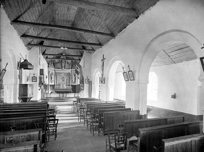 Les parties romanes de l'édifice remontent au 12e siècle. En dehors de quelques linteaux ou ajourations gothiques, à l'intérieur, quatre travées romanes avec arcades à chapiteaux à peine lisibles.