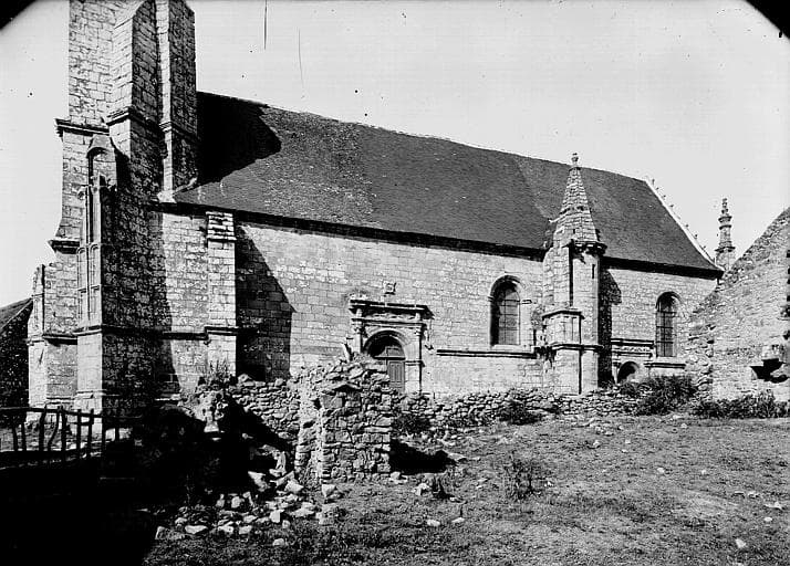 Architecture d'inspiration Renaissance dont le clocher a été foudroyé au 18e siècle. Il n'en reste que l'escalier et des contreforts. Un campanile est juché sur un poutrage établi à la partie supérieure des contreforts. Le chevet comprend une grande verrière plein cintre avec meneaux et remplissages aux formes circulaires. Niche à coquille et fronton à la pointe du pignon. En façade latérale sud, une porte à pilastres avec entablement, et une tourelle polygonale pour l'accès au jubé. A l'intérieur, sablières intéressantes, entraits sculptés.