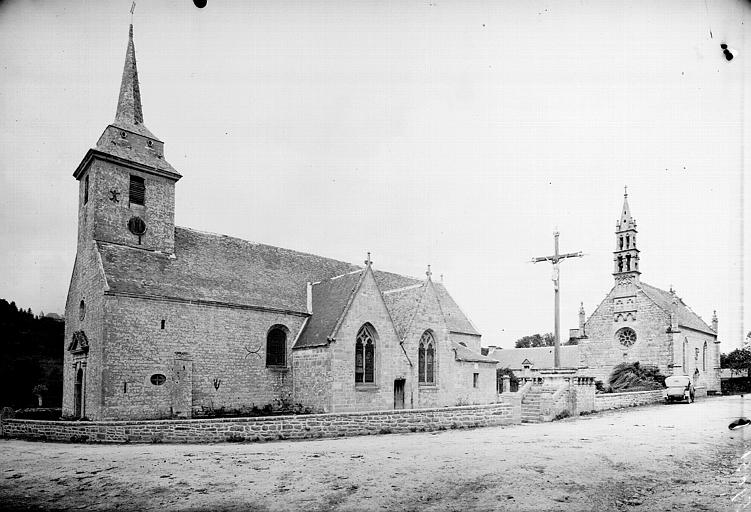 Eglise en forme de croix, les deux bras de transept sont formés de deux travées juxtaposées ayant chacune pignon et fenêtre à meneaux sur les côtés. Les gâbles de ces pignons portent des amortissements sculptés. Le chevet est carré et percé d'une verrière.