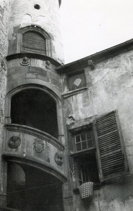 Ancien hôtel présentant, sur sa façade, une fenêtre Renaissance au premier étage, dont l'appui saillant supporte à chacune de ses extrémités les bases de deux pilastres cannelés qui ornent les montants. Chacun de ces pilastres est surmonté d'un chapiteau composite où apparaît un angelot ailé au-dessus des volutes et feuilles d'acanthe. Sur ces chapiteaux reposent les extrémités du linteau que surmonte une corniche en saillie sur chaque extrémité de laquelle s'élève un pinacle à base renflée. La cour intérieure possède, au rez-de-chaussée, deux arcades chanfreinées. L'angle sud-ouest conserve sa tourelle d'escalier. L'escalier à quartier tournant qu'elle renferme dessert les corps de logis par des portes moulurées d'un cavet. A chaque volée, la rampe pleine est décorée en son milieu d'un cartouche entre deux médaillons. Cette tourelle, dont l'ornementation sculptée est d'une qualité exceptionnelle, doit être considérée comme l'exemplaire le plus intéressant d'architecture civile de la Renaissance à Aigueperse.