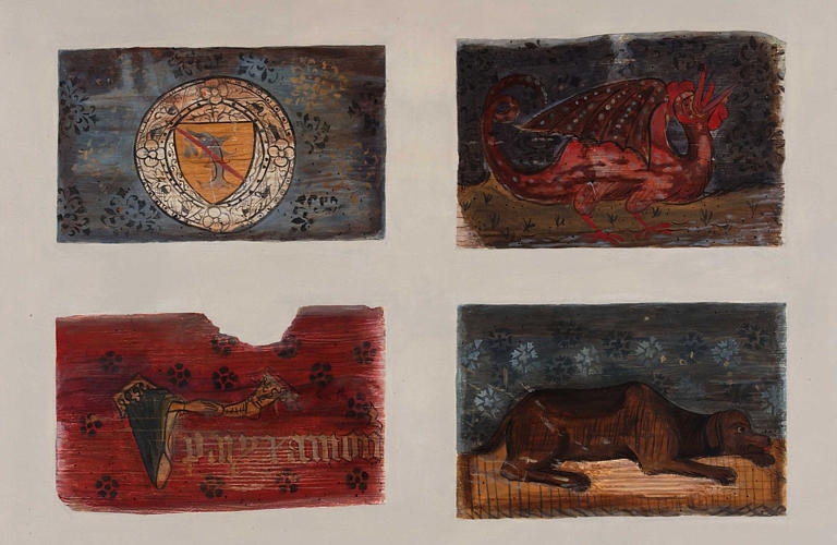 Cette maison du 15e siècle a perdu tout intérêt dans son extérieur du fait de transformations exécutées sans souci d'en entrenir le caractère. Par contre, au premier étage, une salle a conservé un plafond dont les poutres sont ornées de panneaux de bois peints séparés par des solives. Ces panneaux datent du 15e siècle, et représentent des animaux fantastiques et des scènes accompagnées de légendes. La pièce possède également, de la même époque, une cheminée en pierre et une ouverture avec ses bancs de pierre pris dans l'embrasure.