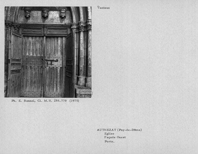 Eglise mentionnée dans une bulle de 1190. Avant 1789, le culte de la Vierge y attirait un grand pélerinage. L'église résulte de la transformation, à partir du 14e siècle, d'un édifice roman. £C'est un édifice d'époque romane et gothique, de plan rectangulaire à trois nefs séparées par des piliers massifs. Les deux premières travées de la nef centrale forment le choeur. Elles sont voûtées d'ogives avec clefs de voûtes rondes. Les ogives des trois travées Est retombent sur des faisceaux de colonnettes engagées, surmontées d'une frise chapiteau sculptée. Les ogives des voûtes retombent soit sur des culots sculptés généralement de têtes humaines, soit sur des chapiteaux-frises sans ornement. Le porche carré voûté d'ogives supporte le clocher qui ne comportait, à l'origine, que le premier étage actuel avec une pièce voûtée d'arêtes. Le second étage renfermant les cloches est d'époque moderne, conçu dans le style Renaissance avec, sur chaque face, une large ouverture à meneau perpendiculaire et, en guise de couronnement, une balustrade ornée à chaque angle d'un fleuron. Au sud, portail d'accès en arc brisé à trois voussures retombant sur un chapiteau-frise sculpté supporté par des colonnettes rondes s'appuyant sur des bases prismatiques. Il comporte un linteau orné de trois têtes couronnées sculptées en relief. Le tympan a été remplacé par un vitrail. De part et d'autre de l'arc supérieur se trouvent deux niches à arc tréflé retombant de chaque côté sur un petit chapiteau sculpté supporté par une colonnette ronde à base prismatique posée sur un appui saillant orné de motifs décoratifs sculptés. Ce portail possède encore ses vantaux anciens à pentures ouvragées typiquement auvergnats. £