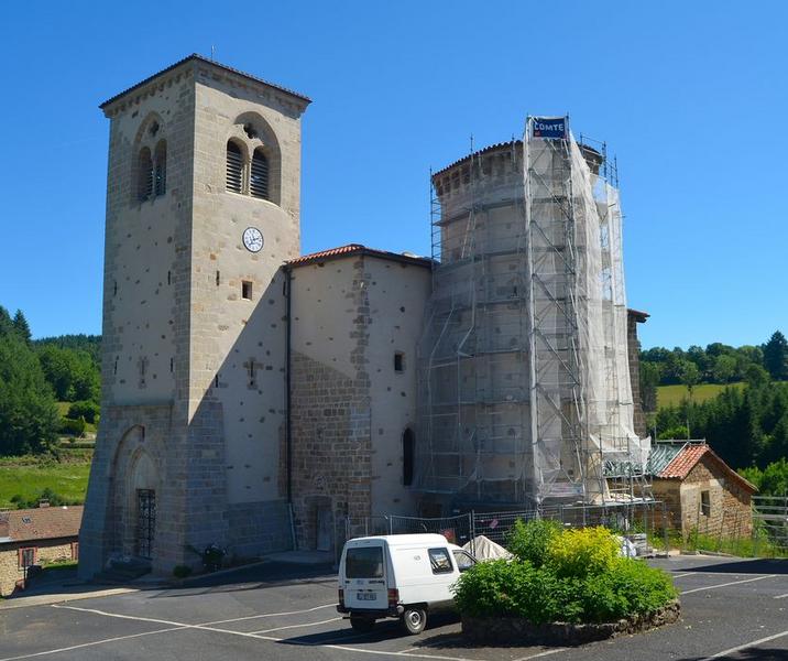 L'église est un édifice à trois nefs et à choeur polygonal, entre deux absidioles de mèche. Construit à l'époque romane, il a été fortifié au 14e siècle notamment par l'adjonction, au sud, d'une tour elliptique, couronnée de mâchicoulis. L'ensemble a été totalement remanié et complété, et toutes les parties couvertes d'ogives. Un clocher carré fortifié précède la nef médiane, au-dessus d'un portail dont les vantaux possèdent de remarquables pentures en fer forgé. £A l'intérieur, une fresque du 16e siècle se présente sous forme de panneau rectangulaire sur le mur goutterot de la dernière chapelle sud. L'angle gauche inférieur est coupé en arc de cercle, sans interruption de la bordure, ce qui paraît indiquer qu'il y avait là primitivement une ouverture. La scène représente la descente de croix. Le fond de la scène est occupé par la ville de Jérusalem, avec des clochers émergeant des maisons. Ce panneau est sans doute le vestige d'un ensemble plus vaste.