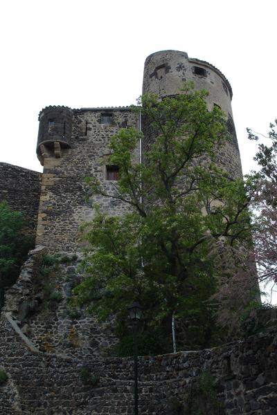Le château de Chalus est l'un des principaux témoignages des fortifications auvergnates, conservant de très rares témoignages d'aménagements intérieurs civils d'époque : cheminée du donjon, ordonnance de la salle polygonale du corps de logis central et peintures murales du logis sud.£Le château occupait autrefois l'ensemble d'une butte commandant la vallée de l'Allier et le bassin du Lembron. Il fut divisé en deux et ne reste aujourd'hui, comme témoin homogène de l'époque médiévale, que la partie antérieure qui défendait l'accès à l'éperon. Ces vestiges sont dominés par un donjon cylindrique construit vers 1300, sur lequel différents corps de logis se sont greffés au 14e et au 15e siècle. A l'intérieur, chaque étage comporte une salle voûtée en coupole. Deux corps de logis s'articulent au pied du donjon. Le corps de logis au sud présente une salle polygonale, dite salle du conseil, dont chaque pan est garni d'un arc de décharge brisé reçu sur colonnettes engagées par l'intermédiaire de chapiteaux. Au rez-de-chaussée de la tour semi-circulaire qui flanque l'angle sud-est du corps de logis, une pièce voûtée conserve les restes d'un décor peint du 15e siècle, comprenant un faux-appareil et un écu porté par deux anges.