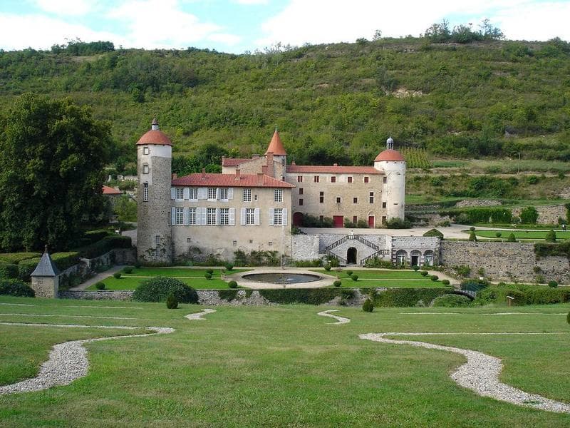 A l'origine simple tour de défense au 13e siècle, le château a été agrandi aux 14e siècle (tours) et au 15e siècle ( réunion de différents corps de bâtiments). Au 18e siècle, le château a été restauré dans le goût de l'époque et le jardin a été aménagé dans le style classique : jardin à la française, mais s'adaptant au site mouvementé et agrémenté d'aménagements tels que labyrinthes, glacières, cascades... Un plan du domaine du 18e siècle est conservé à l'intérieur du château.