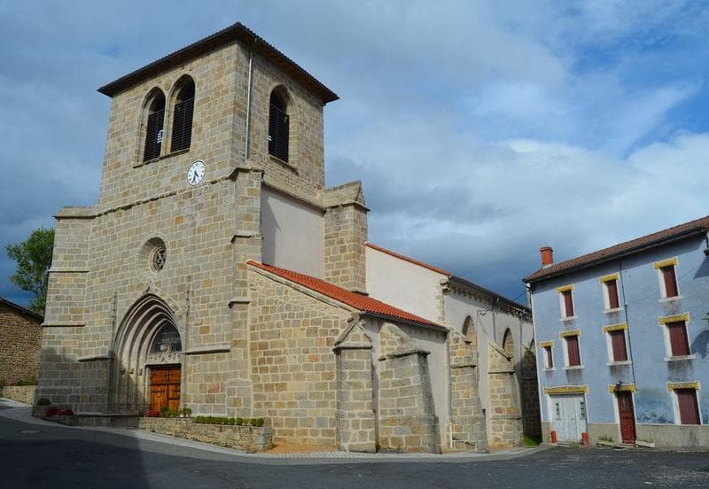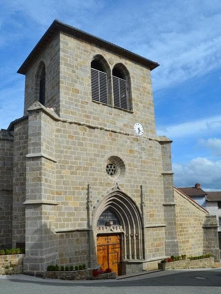Cette église dépendait d'un prieuré annexé au bénéfice du moine de la Chaise-Dieu, nominateur de la cure et portant le titre de sacristain. C'est un petit édifice du 15e siècle, construit en deux temps, dont la nef de trois travées a été doublée peu après sa construction par un collatéral dont la dernière travée s'ouvre sur le choeur, qui est à chevet polygonal. Le chevet possède une corniche sur modillons à copeaux, restes de la construction romane. Les trois travées de la nef portent des traces d'anciennes peintures.