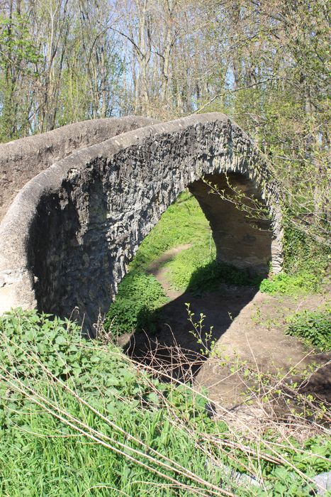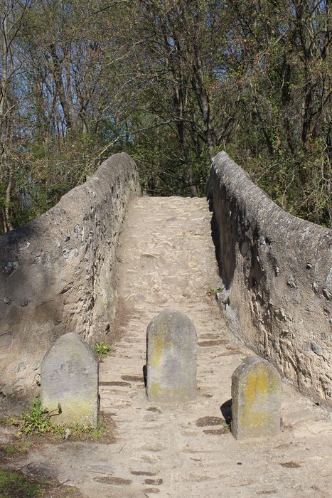 Ce pont, appelé pont romain, est un ouvrage de la fin du Moyen-Age (15e ou début du 16e siècle) , présentant un dos d'âne accusé. Ce pont est formé d'une seule arche de treize mètres de volée. Il est bordé d'un parapet peu élevé. Sa particularité est qu'il aborde le cours d'eau par une sorte de rampe d'accès formant un coude avec le pont lui-même et protégée comme lui par un parapet, mais sur un seul côté.