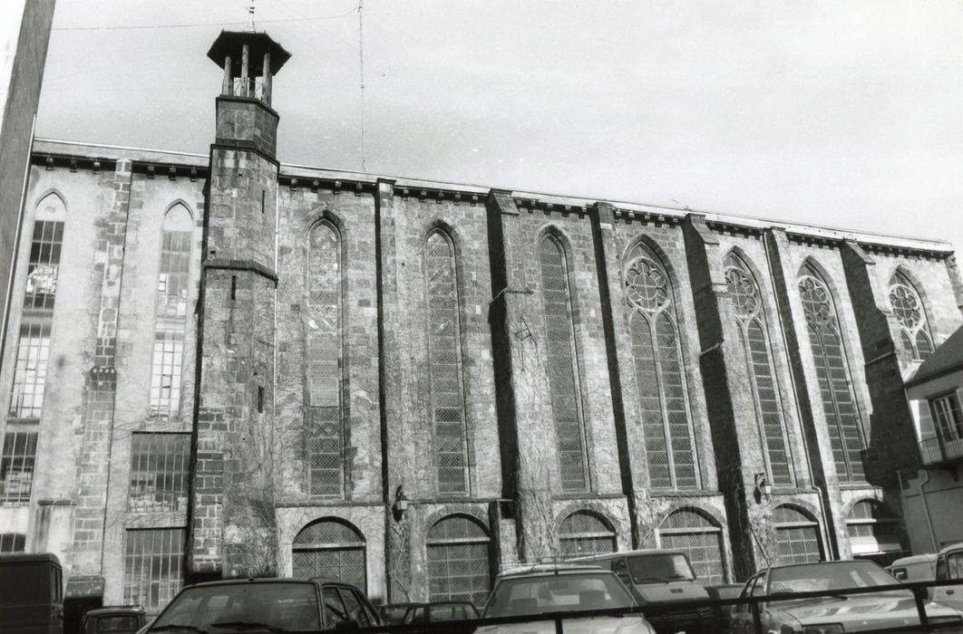 L'église des Cordeliers s'inscrit dans un groupe d'églises franciscaines à nef unique caractéristique de la pééminence de cet ordre mendiant au cours du 13e siècle en milieu urbain. En 1263, Bernard de la Tour, comte de Boulogne, fit don du terrain. La chapelle aurait été fondée en 1273. Le choeur de l'église servit de sépulture pour la famille de la Tour. Avec la vente du couvent des Cordeliers comme bien national à la Révolution, les bâtiments disparaissent peu à peu, remplacés par des constructions fonctionnelles et sans souci d'intégration. Ne reste de cet ensemble monastique, hormis une peinture murale à l'entrée de ce qui correspondait au réfectoire, que l'église. L'édifice a été dénaturé par la destruction partielle de la voûte vers 1854 ; par le compartimentage du volume pour l'installation des services d'archives en 1806 ; par des restaurations. Du décor intérieur, ne subsiste que des colonnettes et chapiteaux apparaissant par endroit. L'emplacement du jubé est discernable par quelques vestiges au rez-de-chaussée. Cet édifice reste le seul exemplaire en Auvergne du système de voûtes sexpartites. Les quelques arcades du cloître qui restent côté cour remontent au 18e siècle. En façade, percements avec deux lancettes et rosaces polylobées.
