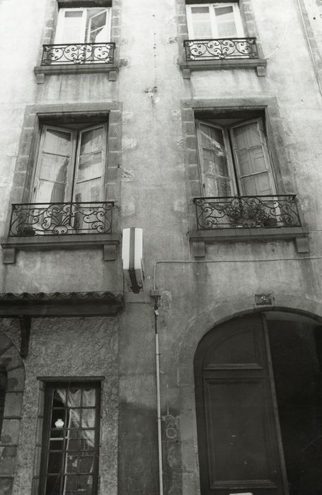 Il s'agit d'un bâtiment médiéval retouché de 1608 à 1613, avec une façade du 18e siècle. La cour de cet immeuble est l'une des plus intéressantes cours de la fin de la Renaissance à Clermont, et témoigne de l'élégance atteinte par les artisans auvergnats dans les détails d'architecture et de sculpture à cette époque (portail avec fronton triangulaire, arc ouvrant sur le passage, chambranles des fenêtres, cartouches, agrafes). Tourelle d'angle circulaire sur trompe concave en éventail apparaillée en panache. La clef de l'arc de front est ornée d'une sorte de Bacchus à la face épanouie et à la chevelure symbolisée par des pampres. Ce claveau porte la date de 1605. Il est surmonté d'un superbe cartouche composé d'un miroir central convexe, entouré de cuirs entrelacés. Ce miroir est posé sur une tête orientale avec plumes et moustaches, et surmonté d'un angelots joufflu à la chevelure bouclée.