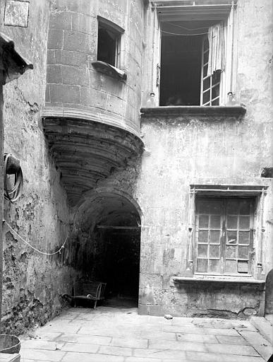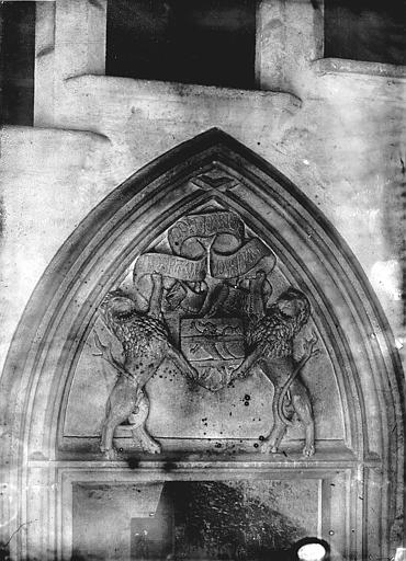 Cet hôtel comprend, derrière la façade actuelle, dans la partie étroite qui servait primitivement de cour d'entrée, une porte rectangulaire sous arc de décharge brisé. Dans le tympan est un écusson au lion rampant chargé de deux fasces brochant armes.