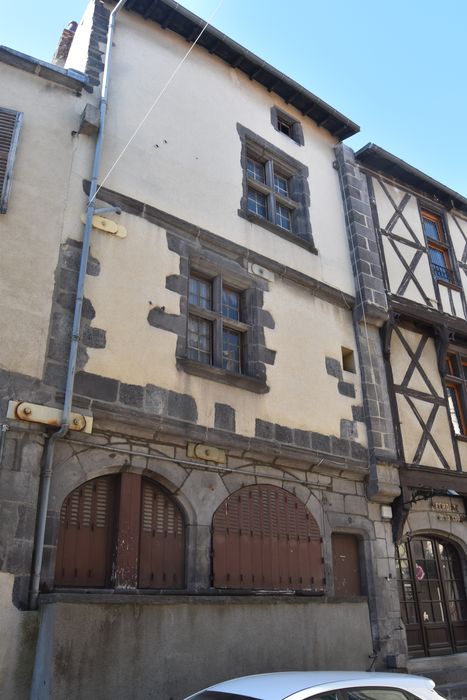Le rez-de-chaussée comporte une porte rectangulaire dont le linteau et les piedroits sont moulurés d'un cavet, et deux baies de boutiques à anse de panier, moulurées de même. Devant celle qui est située au milieu de la façade, se trouve à hauteur d'appui une large tablette de pierre formant étal. Un étal de même se trouve devant une moitié de l'autre boutique, l'autre moitié étant laissée libre pour l'accès. Le rez-de-chaussée paraît indiquer le début, et les étages la fin du 15e siècle.