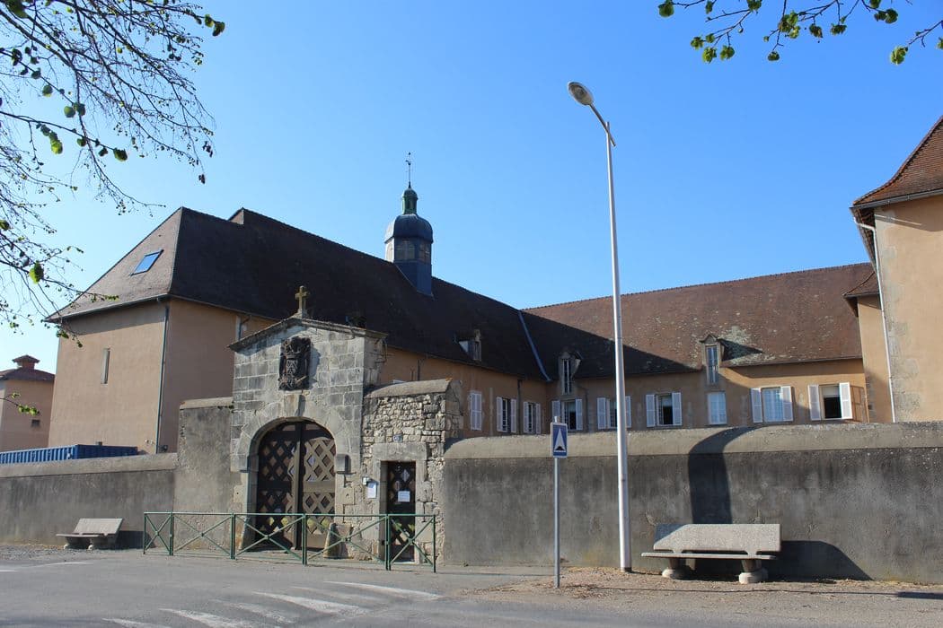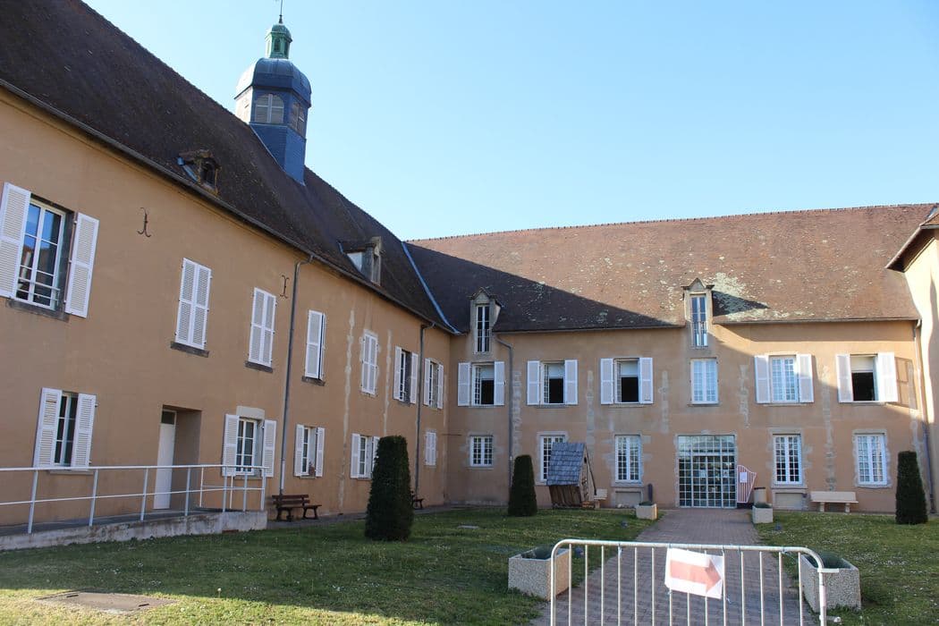 Hospice fondé au milieu du 17e siècle, en exécution du testament du maréchal d'Effiat. Il comprend trois corps de bâtiment à deux niveaux et en retour d'équerre, édifiés dans une architecture simple qu'animent les hautes toitures à quatre pans et les lucarnes, dont certaines ont été prolongées jusqu'au plancher. Un campanile à dôme couronne le bâtiment nord-sud. Du 17e siècle subsistent également le pigeonnier et le portail d'entrée, armorié et daté de 1643.