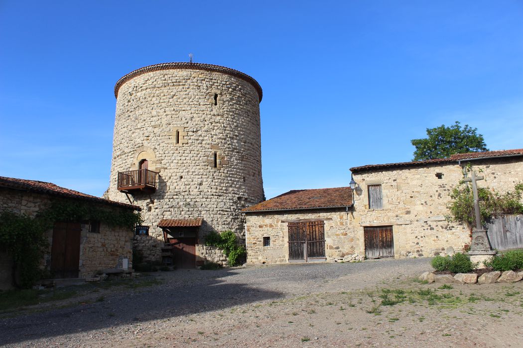 De l'enceinte castrale sont conservés d'importants éléments de muraille ainsi qu'une tour dont l'entrée est au premier étage selon les dispositions coutumières dans ce genre d'ouvrage défensif. Le donjon se trouve à l'angle nord-est et est le seul exemple de donjon de place-forte conservé dans la région, avec ceux de Montpeyroux et de La Sauvetat. L'ouvrage se présente comme une tour cylindrique dont la base est à plusieurs mètres au-dessus du sol. Un pont-levis ou une galerie mobile donnait accès à l'étage. Les têtes de poutres étaient reçues dans trois trous carrés encore apparents sous la base de la porte plein cintre, à tympan formé d'une seule pierre taillée et unie, soutenue par deux corbelets et posés légèrement en retrait. Le donjon a été découronné et rasé à hauteur du second étage. Les voûtes du rez-de-chaussée et du premier étage ont été démolies. Il ne reste que des vestiges de l'escalier primitif reliant le premier étage au couronnement. Le donjon est percé de petites ouvertures (archère, meurtrière).
