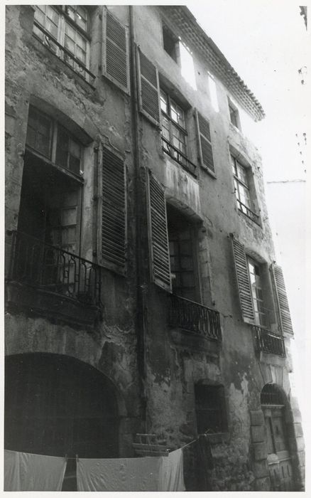 Ancien hôtel dont la partie la plus importante est la cour avec ses galeries et son escalier extérieur. Le rez-de-chaussée de la façade est percé d'une baie en anse de panier, d'une fenêtre à appui saillant et à l'arc surbaissé, et d'un portail dont les piedroits et l'arc en anse de panier sont appareillés en bossages. A ce rez-de-chaussée se superposent trois étages dont chacun comporte trois fenêtres de façade, le dernier formant attique sous la gênoise couronnant la façade. Les fenêtres du premier étage comportent d'élégants balcons Louis XVI en fer forgé. Perpendiculaire à la précédente, la façade sur la rue des Fours présente ses deux parties extrêmes surélevées, correspondant à des corps de logis joints entre eux par un mur fermant la cour intérieure au milieu de cette façade. La porte à bossages, rue du Fer, que ferment deux vantaux du 17e siècle, sous une imposte à vitrage dormant, ouvre sur un rez-de-chaussée formé de deux travées voûtées d'arêtes. Ces travées ouvrent sur une cour intérieure dont la moitié droite est occupée par un escalier à large montée droite.