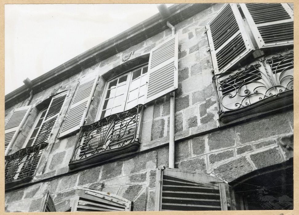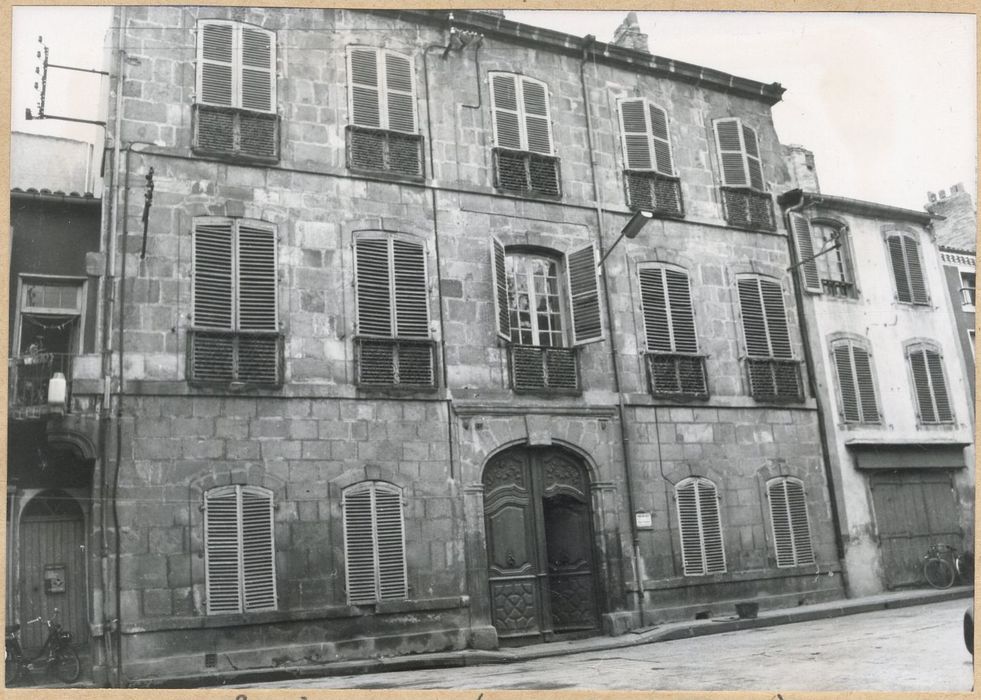 Immeuble construit vers le milieu du 18e siècle pour servir de bureau pour la perception et la conservation des impôts royaux. Cette maison bourgeoise présente deux façades, l'une sur rue traitée sobrement, l'autre sur jardin avec un portique surbaissé formant terrasse. Les façades sont rehaussées d'éléments décoratifs tels que les vantaux de la porte d'entrée, les balcons et la rampe d'escalier en fer forgé. A l'intérieur, salles voûtées aux plafonds ornés de motifs en stuc. Cet immeuble peut être considéré comme un exemple de belle demeure bourgeoise auvergnate du 18e siècle.