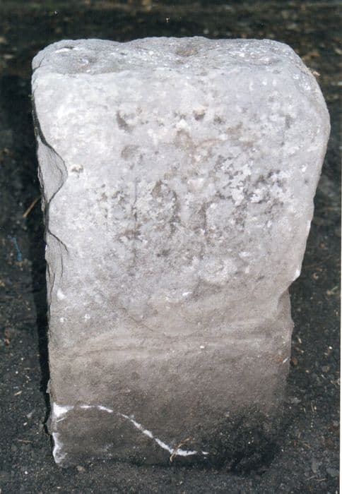 Borne de justice antérieure à 1330, présentant l'écu du gonfanon des Comtes d'Auvergne. Aucune sculpture n'apparaît sur la face opposée par suite du bûchage qu'elle a subi.