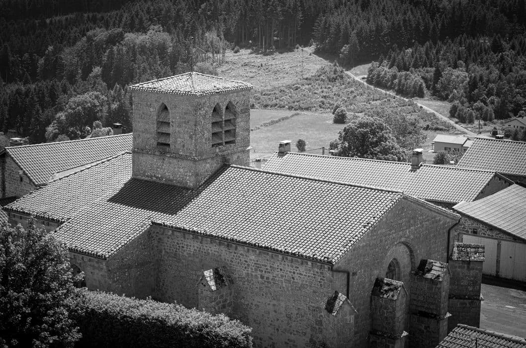 Le prieuré serait antérieur à 1067. En 1256, une transaction est passée entre l'abbé de la Chaise-Dieu et le seigneur de Roche-Savine : le prieuré sera l'un des six à dépendre de l'office de chambrier de la Chaise-Dieu. Le prieuré avait deux églises dans sa dépendance et exerçait la justice seigneuriale. L'édifice est composé d'une croisée de transept d'époque romane, voûtée d'une coupole sur trompes, dernier vestige du sanctuaire primitif qu'enveloppe l'église actuelle, reconstruite au 15e siècle. Dans la croisée, chapiteaux à entrelacs et personnages. Arcs géminés entre nef et transept. Portail méridional dont le style s'apparente à celui de la Chaise-Dieu.
