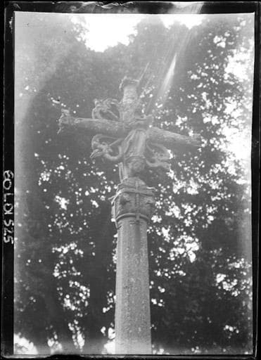 Croix en pierre datée de 1526, représentant d'un côté le Christ, de l'autre la Vierge à l'Enfant. L'ouvrage est complet dans son ensemble, ce qui est rare. Au-dessous de la base de la croix est un piédestal orné d'attributs sur chacune de ses faces. Entre les bras de la croix, motif ornemental de feuillages.