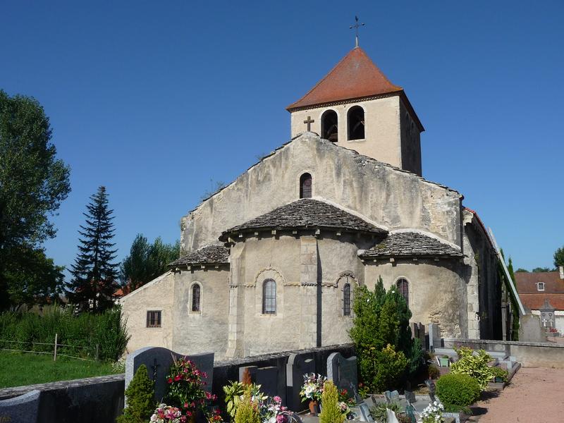 La paroisse comportait autrefois un prieuré qui fut donné en 1193 par le chapitre de Clermont au prieuré du Lac Rouge, à condition que soit construite une église. Cet édifice est un bon exemple de petite église rurale caractéristique de l'Auvergne romane, avec une nef relativement élevée voûtée en berceau accompagnée de collatéraux étroits voûtés en demi berceaux ; absence de transept. Une coupole sur trompe soutient le clocher (l'actuel, date du milieu du 19e siècle). Le chevet en hémicycle est flanqué de deux absidioles, peut-être postérieures. Le portail occidental a été supprimé.