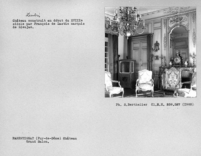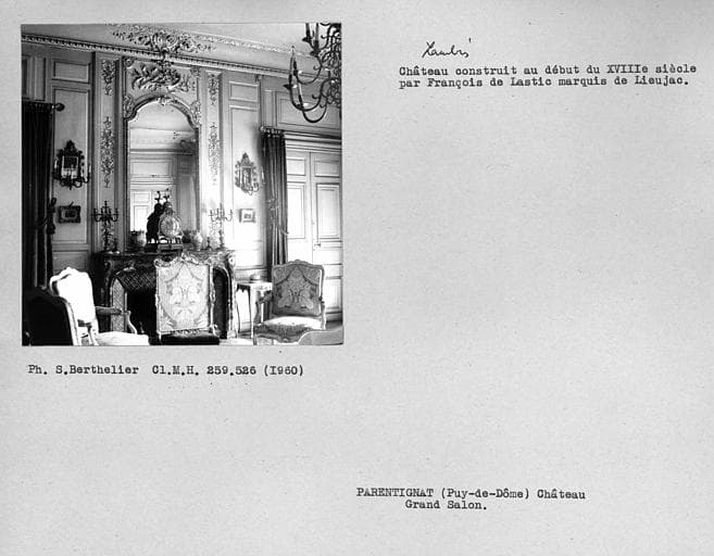 En 1707, le domaine est vendu à Jean Antoine de Lastic, prieur de Bredom, et François de Lastic, seigneur de Sieujac. Le désir d'ériger une demeure dans le goût de l'époque poussa ce dernier à remplacer l'ancienne maison forte par des constructions d'ordonnance plus développée. Il utilisa cependant la gentilhommière d'origine qui forma l'aile nord du château, ainsi qu'une maison à l'allure de maison forte, appelée la maison du roi, alors comprise dans le village, qui forma l'aile sud. Le château consiste en un vaste corps de logis allongé possédant deux ailes en retour. Le bâtiment possède deux étages, dont l'étage supérieur mansardé au-dessus d'une gênoise. A la suite de l'incendie de 1822, les mansardes furent remplacées par les toits à deux pentes, hormis la partie des ailes sur cour d'honneur où les mansardes ont été conservées. Aux angles extérieurs des ailes sur la cour d'honneur sont accolées des tours circulaires, dont celle du nord devait appartenir à l'ancien château, et celle du sud a été élevée pour la symétrie. Une autre tour circulaire ayant appartenu au château d'origine est visible sur la façade nord de l'aile nord. La cour d'honneur, face à la façade ouest, est bordée par deux grandes écuries, seules constructions élevées au début du 18e siècle dont les toits n'ont pas été modifiés. Sur la façade Est, des fenêtres ont conservé leurs menuiseries. Cette façade s'ouvre sur une longue terrasse bordée, au nord, par une balustrade de pierre. De ce côté se trouve l'église paroissiale de souche romane, dont une partie d'époque plus récente forme la chapelle castrale. Vers 1780, le parc à l'anglaise a été remplacé par un parc à la française, époque à laquelle fut construit la fabrique appelée "Trianon".£L'intérieur du château semble ne pas avoir beaucoup changé depuis le 18e siècle, ainsi qu'en témoignent les anciens inventaires.