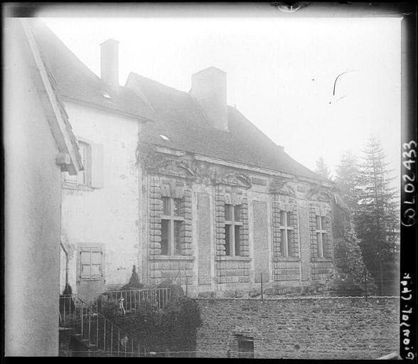 Ancien château dont une partie aurait été construite par Gilbert de Chazeron, gouverneur du Lyonnais et du bourbonnais, à la fin du 16e siècle. Après 1793, château et parc font l'objet de nombreuses transactions. La propriété est divisée et plusieurs acquéreurs se partagent les bâtiments. D'après un plan de 1793, le château avait une forme de pentagone irrégulier enveloppant une cour intérieure, disposition d'ensemble à peu près maintenue aujourd'hui. A l'ouest se situent les constructions de la fin du 16e siècle ; à l'est les parties élevées à la fin du 14e siècle. Seuls les bâtiments fermant la cour au nord et au nord-est, entre le château primitif et le château Renaissance, ont été profondément altérés par des remaniements modernes. £Le château primitif était formé d'un corps de logis rectangulaire flanqué de tours à trois de ses angles, dont deux ont été démolies. Sur la cour intérieure, seules les deux fenêtres du premier étage ont conservé leurs encadrements moulurés de deux cavets. Une tour d'escalier carrée fut ajoutée à la fin du 15e siècle, époque où le château fut restauré. A l'intérieur, le corps de logis a conservé, dans certaines pièces, parquets et boiseries.