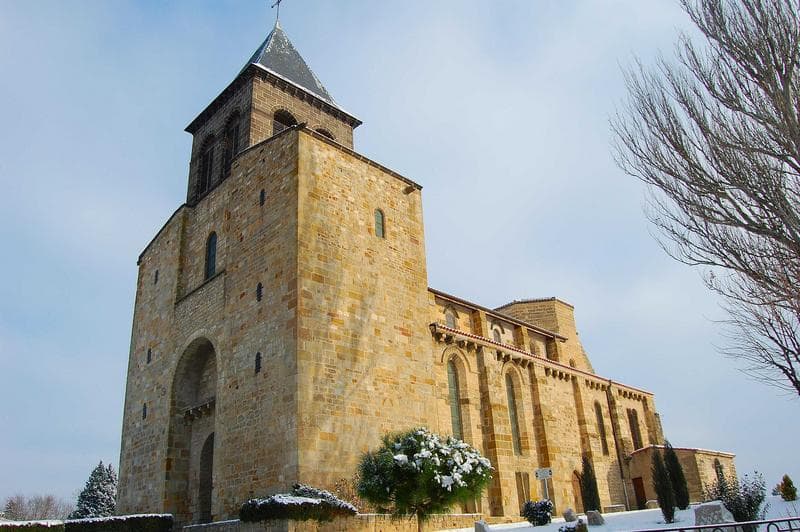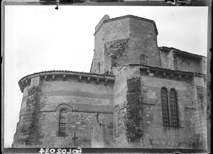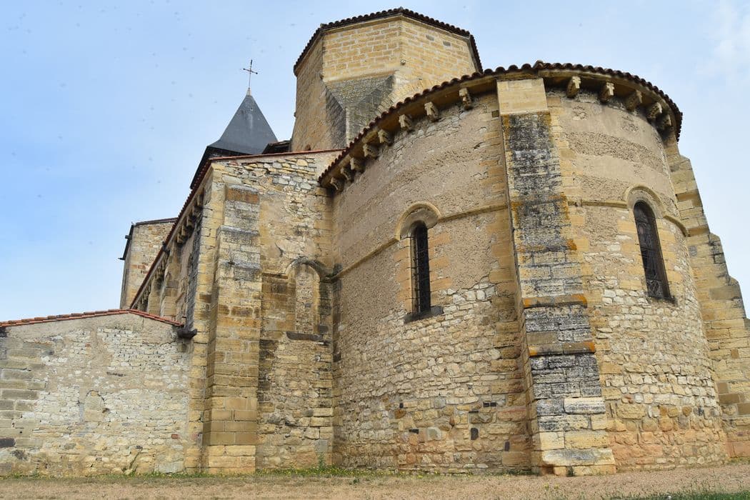 Eglise du 12e siècle, composée d'une nef de six travées avec bas-côtés voûtés d'arêtes. La nef est voûtée d'ogives reposant sur des chapiteaux portés par des colonnettes cul-de-lampe sur des têtes sculptées. Ces voûtes ont été refaites à la fin du 13e siècle. Présence de chapelles rayonnantes. Abside circulaire. Le clocher de la façade, sur un des angles de l'édifice, est moderne. Il est à supposer que le projet primitif était d'en construire deux accostant la tribune qui existe au-dessus de la première travée.