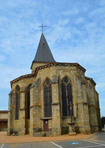 Edifice du 14e siècle composé d'une nef de quatre travées et d'un choeur polygonal. A la troisième travée correspondent deux chapelles symétriques rectangulaires formant transept. A la quatrième travée, précédant le sanctuaire, correspond un second transept, mais les chapelles ainsi formées, également symétriques, sont polygonales. A l'extérieur, une tourelle accolée au transept carré nord donne accès au comble. Le clocher, bâti sur la première travée, est moderne, ainsi que la sacristie. Un vitrail du 14e siècle orne la première fenêtre nord de la nef. En bas de l'escalier, porte en bois du 14e siècle également, à arcatures.