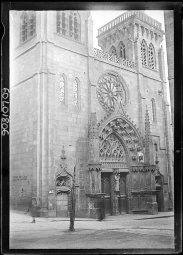 Eglise bâtie au 15e siècle, paraissant n'avoir été composée à l'origine que d'une nef avec une abside à trois pans, et précédée à l'ouest de deux tours entre lesquelles un portail s'ouvrait. De chaque côté de la nef, derrière les tours, sont deux chapelles remontant au 16e siècle. Actuellement, un bas-côté enveloppe le choeur et la nef. Trois chapelles absidiales et quatre travées formant deux chapelles ont été ajoutées. Sur le bas-côté gauche, la travée près du choeur présente une verrière figurant l'Annonciation, datant du 14e siècle. Vitrail daté de 1538 dans la chapelle de la première travée du bas-côté de droite. Sur le trumeau de la façade ouest se trouve la Vierge à l'Enfant.